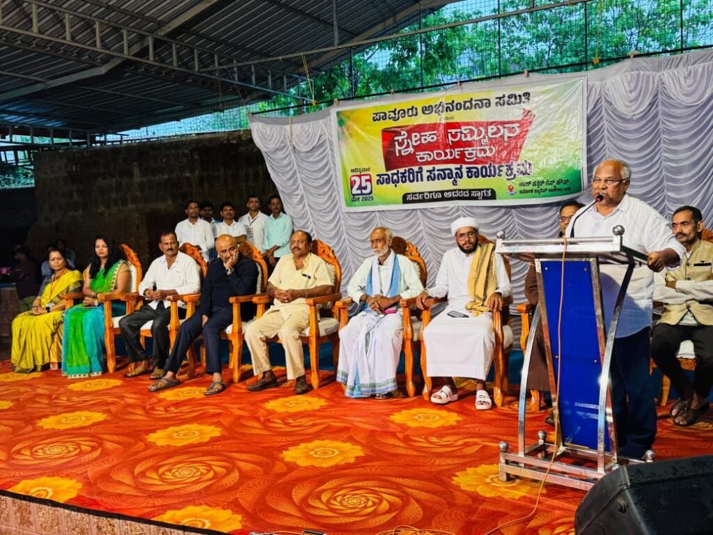 ಮಂಗಳೂರು: ಪಾವೂರು ಅಭಿನಂದನಾ ಸಮಿತಿ ವತಿಯಿಂದ ಪಾವೂರು ಸೌಹಾರ್ದ ಗ್ರಾಮದ ಮೂರು ಪ್ರಮುಖ ಧರ್ಮದ ಧರ್ಮಗುರುಗಳಾದ ಶ್ರೀಮಾನ್ ಸುಬ್ರಹ್ಮಣ್ಯ ರಾವ್,ಮುಹಮ್ಮದ್ ಶಫೀಕ್ ಅಲ್ ಫಾಳಿಲ್ ಕೌಸರಿ ಹಾಗೂ ಫಾದರ್ ಮನೋಹರ್ ಡಿಸೋಜಾ ರವರನ್ನು ಸನ್ಮಾನಿಸುವುದರ ಜೊತೆಗೆ ಪ್ರಾರಂಭಗೊಂಡು ಕಳೆದ ಹಲವಾರು ವರ್ಷಗಳಲ್ಲಿ ವಿವಿಧ ಕ್ಷೇತ್ರದಲ್ಲಿ ಸಾಧನೆಗೈದ ಗ್ರಾಮದ ಸುಮಾರು 80 ಕ್ಕೂ ಅಧಿಕ ಮಂದಿಗೆ ಸನ್ಮಾನ ಕಾರ್ಯಕ್ರಮವು ಇನೋಳಿ ಬ್ಯಾರೀಸ್ ಕಾಲೇಜು ಬಳಿಯ ಲಾಲ್ ಪತ್ತರ್ ಅತಿಥಿ ಗೃಹದಲ್ಲಿ ಬಹಳ ಅದ್ದೂರಿಯಾಗಿ ನಡೆಯಿತು.